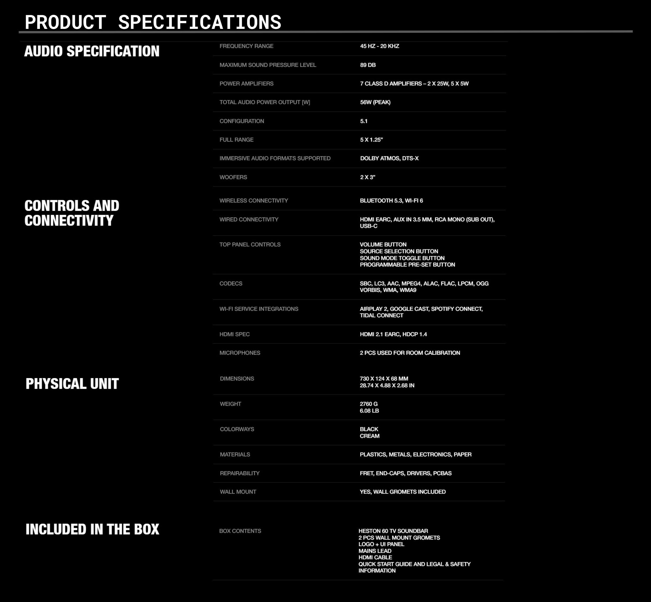From movie marathons to your favourite songs on repeat, this soundbar makes every note hit deeper. Featuring Dolby Atmos, Heston 60’s sound pulls you further into the action.