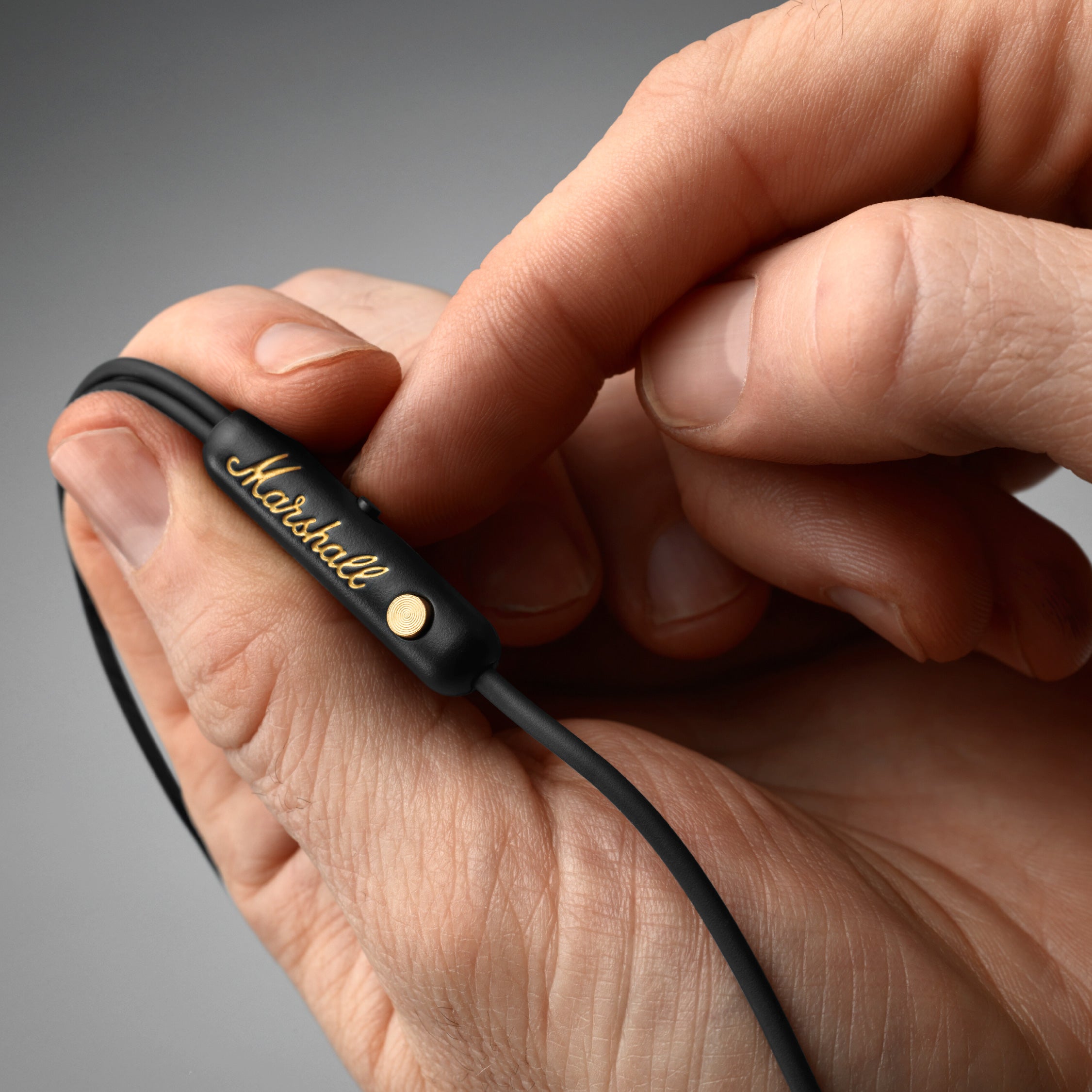 Mode EQ features the iconic Marshall script on the cable clip and Marshall brass M logo onthe earbuds.