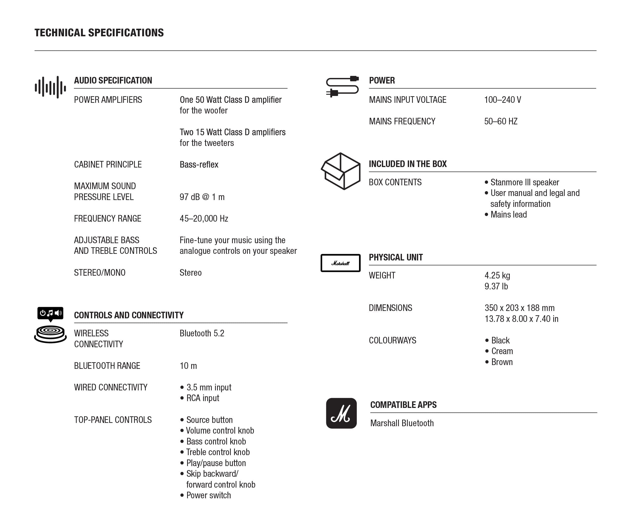 Stanmore III is ready for the future of Bluetooth technology and has been built to deliver next-generation Bluetooth features the moment they are available. Over the Air (OTA) updates via the app ensure that your speaker is always up-to-date with the latest software and features.