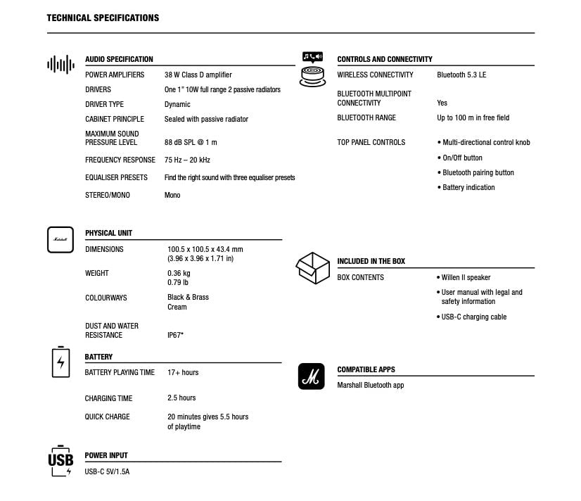 Willen II doesn’t just look good, it’s built to battle the elements. It boasts an extremely durable and easy-to-use design. This speaker brings together iconic