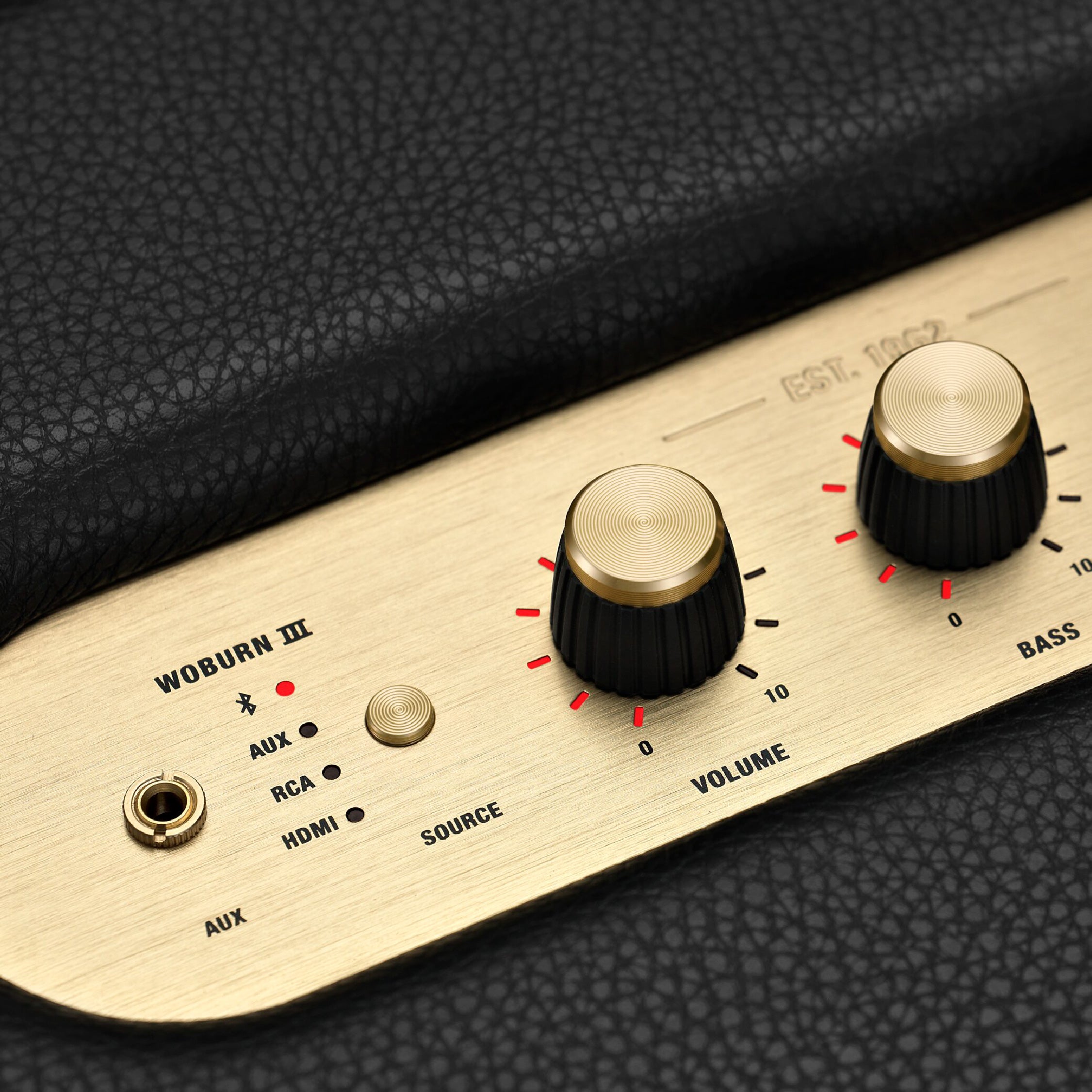 With so many ways to connect to Woburn III, getting the right sound for listening to music or watching TV has never been so effortless. Connect to your speaker directly from your device using Bluetooth, RCA or 3.5 mm. Woburn III also has an HDMI input, which allows you to connect Woburn III to your TV for a uniquely Marshall viewing experience.