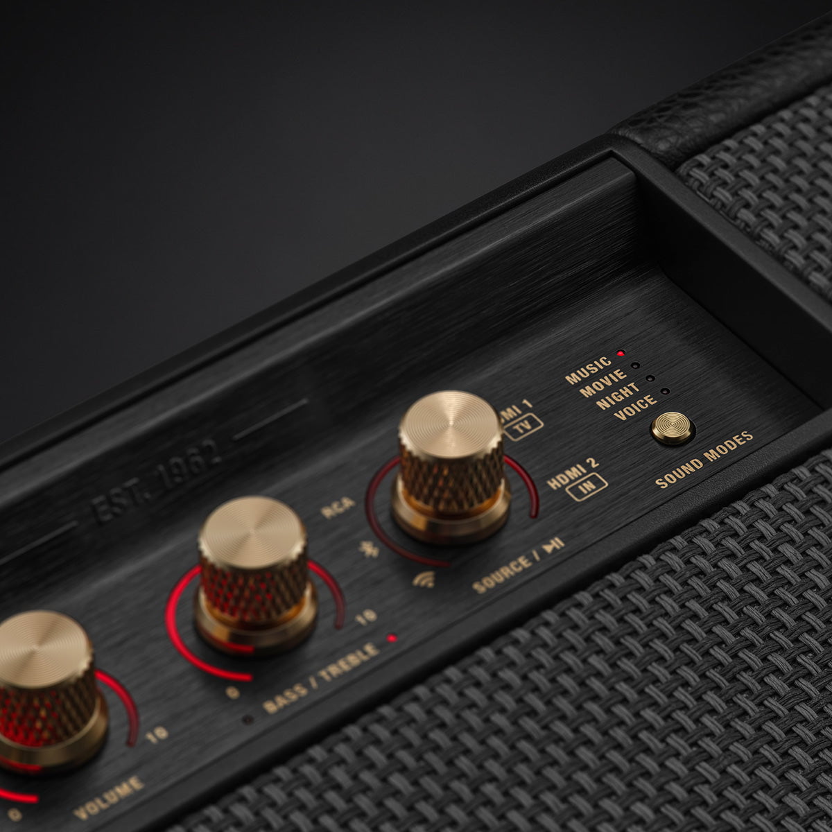 Adjust the audio for your movies and music with Heston 120’s heritage amp-inspired knobs. Instantly customise bass and treble, change source, and access presets.