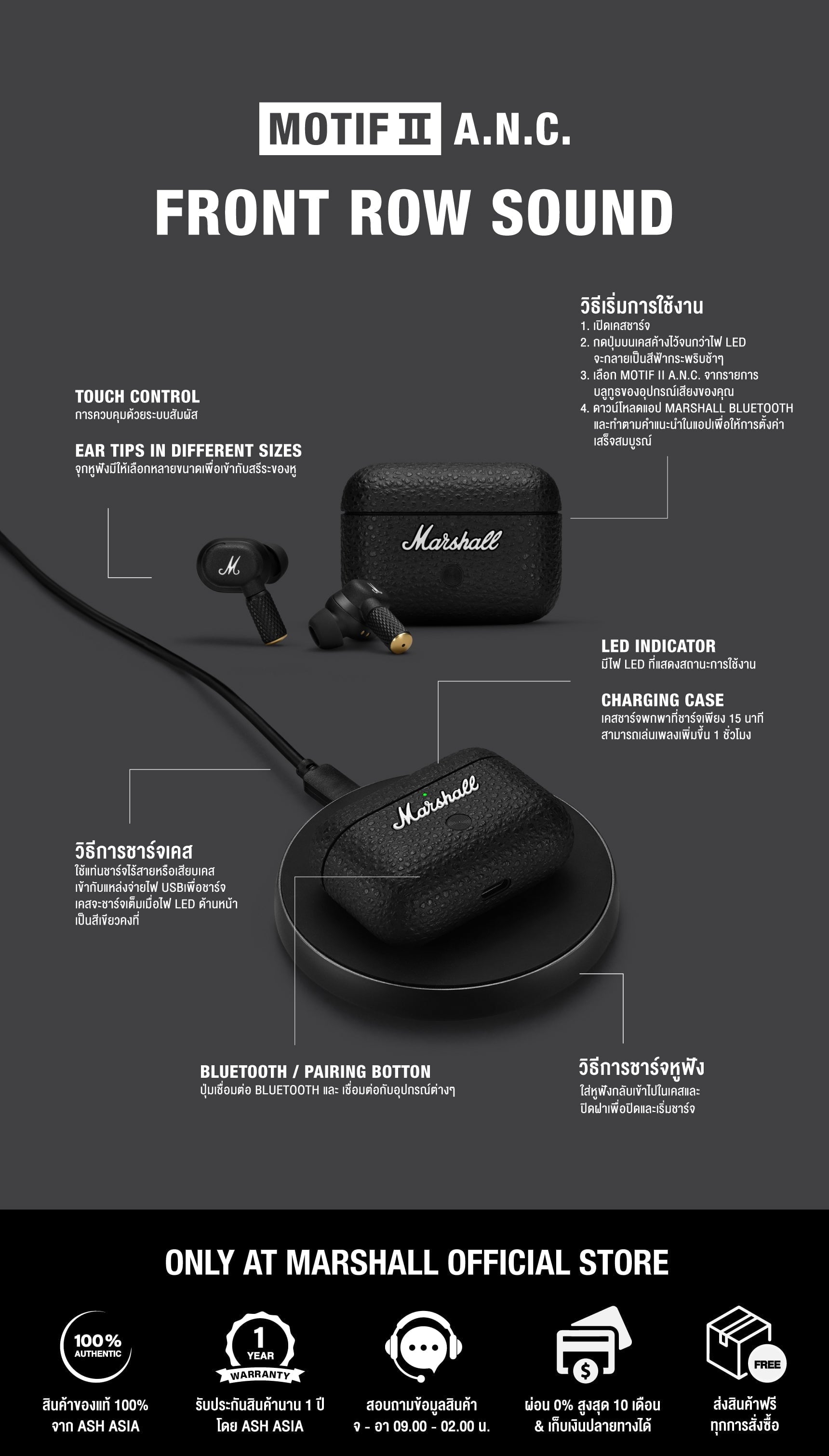 Motif II A.N.C. ให้คุณสามารถพกพาเสียงอันเป็นเอกลักษณ์ของ Marshall ไปกับคุณได้ทุกที่ ที่คุณต้องการ